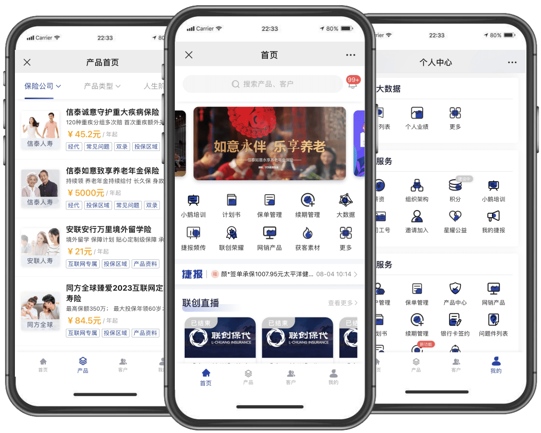 全新自研“聯創(chuàng)秒保”移動展業系統,一站式展業支持工具,助力快速出單